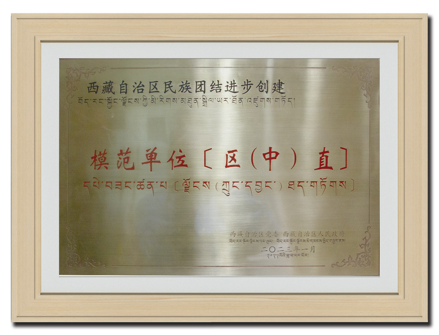 2023年1月 西藏自治區(qū)民族團結(jié)進步創(chuàng)建《模范單位〔區(qū)(中)直]》