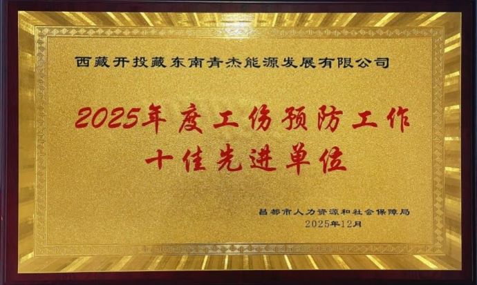 12月9日,昌都市人力資源和社會(huì)保障局授予西藏開(kāi)投藏東南青杰能源公司“2025年度工傷預(yù)防工作十佳先進(jìn)單位”稱號(hào),以表彰公司在工傷預(yù)防與安全管理方面取得的扎實(shí)成效。