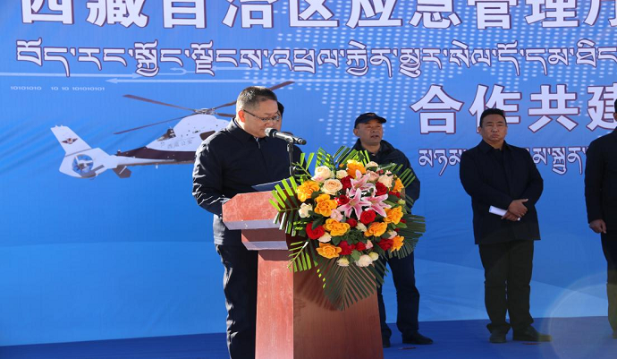 祁騰武代表西藏民航投,對(duì)各位領(lǐng)導(dǎo)、嘉賓的到來(lái)表示衷心感謝和誠(chéng)摯歡迎。他表示,西藏航空應(yīng)急救援基地的建設(shè)和揭牌,是貫徹落實(shí)習(xí)近平總書記關(guān)于西藏工作和應(yīng)急救援體系建設(shè)重要指示批示精神,推動(dòng)自治區(qū)黨委第十一次、第十四次專題會(huì)議精神落實(shí)落地的重要舉措,為推動(dòng)我區(qū)不斷健全完善“統(tǒng)一指揮、上下聯(lián)動(dòng)、空地同、快速反應(yīng)”應(yīng)急救援機(jī)制和“立體式、全天候、全災(zāi)種、高水平”綜合應(yīng)急救援體系邁出了堅(jiān)實(shí)的一步。期待民航投與自治區(qū)應(yīng)急廳的戰(zhàn)略合作從“心”出發(fā),向新而行,不斷開創(chuàng)新的局面,交出滿意合格答卷。