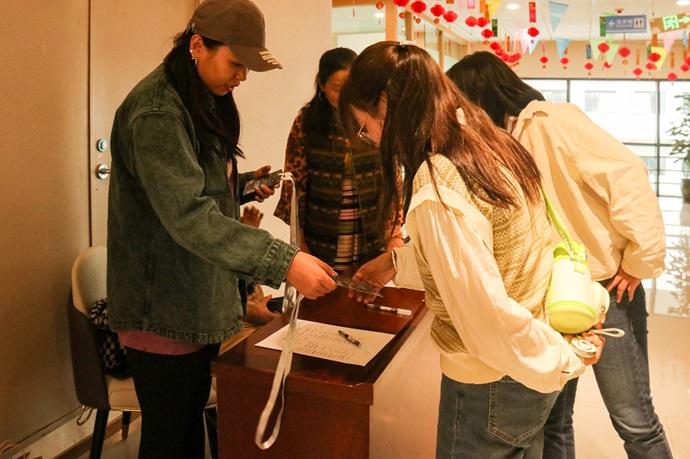 活動開始前,員工及家屬陸陸續(xù)續(xù)開始簽到入場。在簽到處的旁邊還設(shè)置了打卡區(qū),員工及家屬紛紛在此打卡留念。