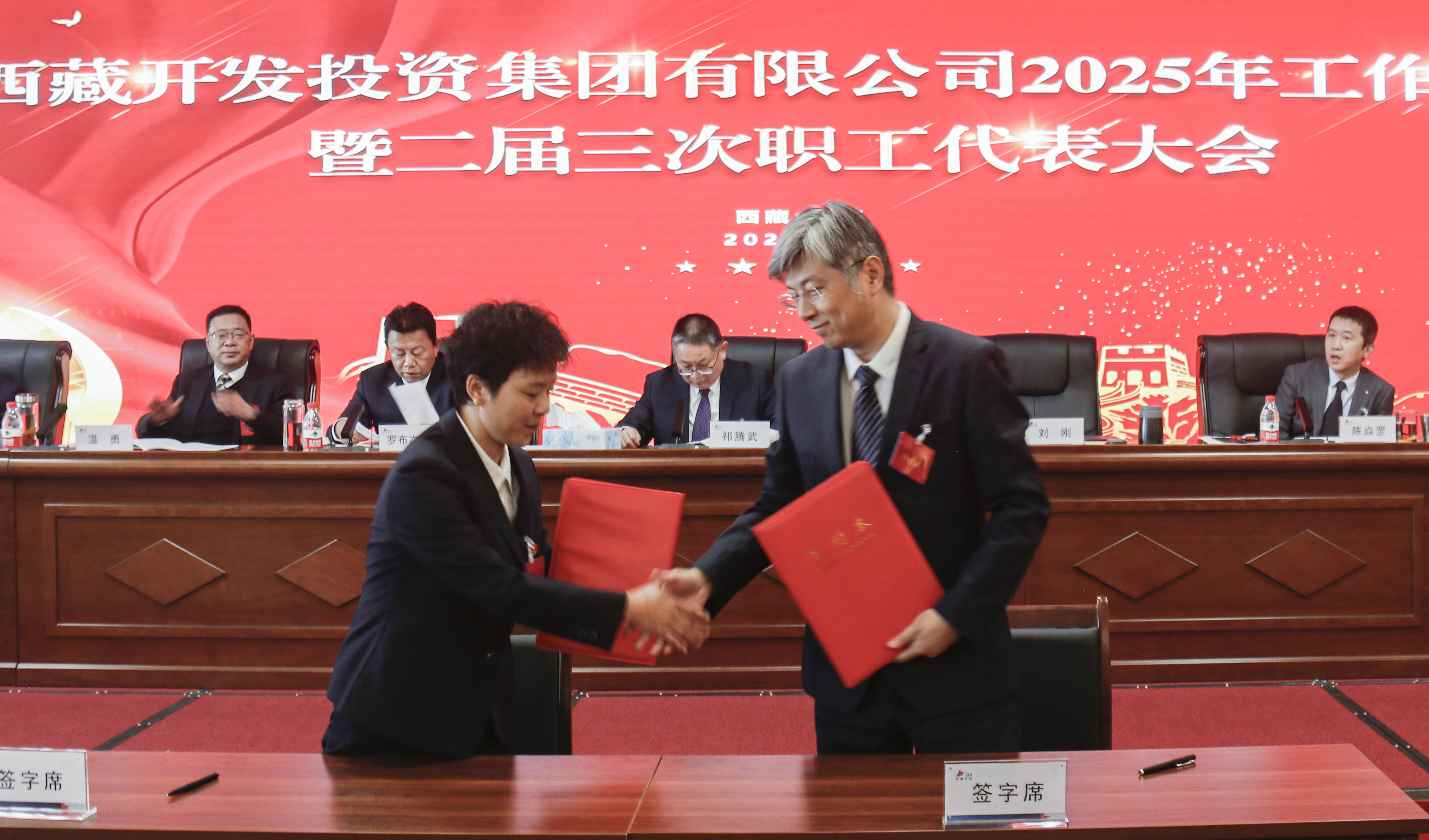 會上,集團管理方首席代表劉剛與集團職工方首席代表羅布次仁簽訂了《集體合同》及附屬專項集體合同。并代表集團與各部門、各單位代表簽訂了今年的目標責任書。