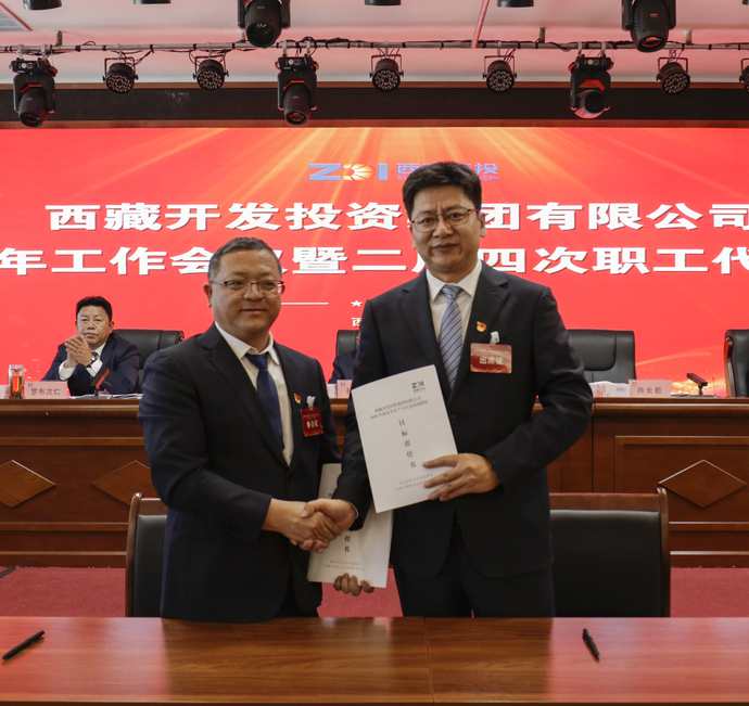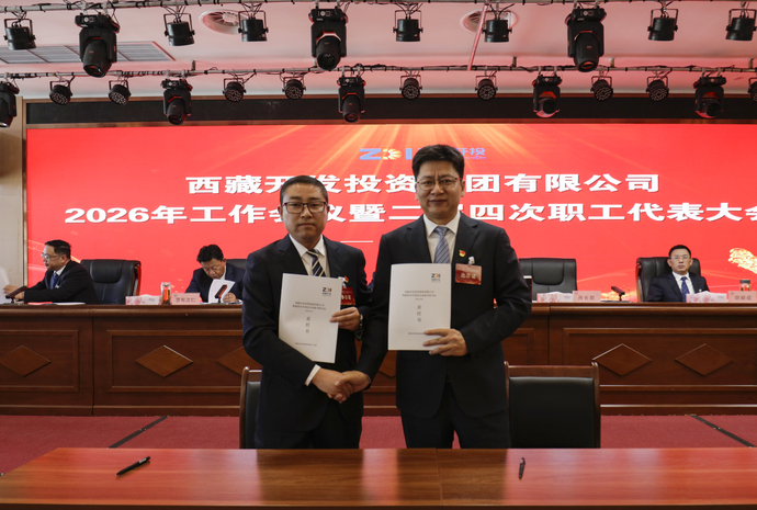 會上,集團(tuán)管理方首席代表肖長歌與集團(tuán)職工方首席代表羅布次仁簽訂了《集體合同》及專項附屬集體合同。肖長歌代表集團(tuán)與各部門、各單位代表簽訂了今年的目標(biāo)責(zé)任書。