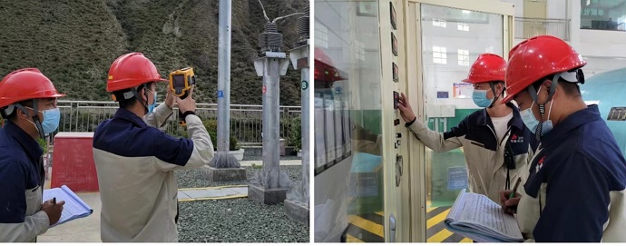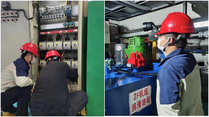 運(yùn)維值班人員分別對(duì)廠內(nèi)水輪發(fā)電機(jī)組的勵(lì)磁系統(tǒng)、保護(hù)盤柜、調(diào)速器控制系統(tǒng)、潤滑油站、振擺監(jiān)測(cè)柜、出口開關(guān)柜等系統(tǒng)和廠外35千伏升壓站主變、互感器、斷路器、母線、避雷器等設(shè)備進(jìn)行大約需要一個(gè)小時(shí)的巡檢和特巡,通過檢查設(shè)備的運(yùn)行方式、隱患和缺陷等情況,全力保障機(jī)組安全穩(wěn)定運(yùn)行。