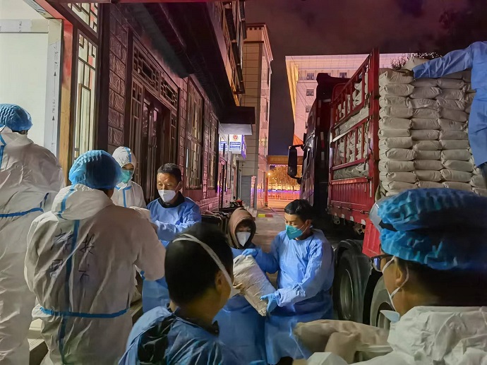 進(jìn)駐 “疫”線后,集團(tuán)公司副總經(jīng)理尼瑪親任志愿服務(wù)隊(duì)隊(duì)長(zhǎng),迅速組建后勤保障組、工作聯(lián)系組、防疫信息組、時(shí)事宣傳組,為做好志愿服務(wù)疫情防控工作提供組織保障。志愿服務(wù)隊(duì)各盡其職、團(tuán)結(jié)一心、分工協(xié)作。據(jù)統(tǒng)計(jì),截至9月26日,已完成米、面、糌粑等重要物資裝卸、轉(zhuǎn)運(yùn)45.98噸,完成新冠病毒核酸檢測(cè)7530人次,對(duì)陽(yáng)性居住區(qū)進(jìn)行消毒消殺12戶。