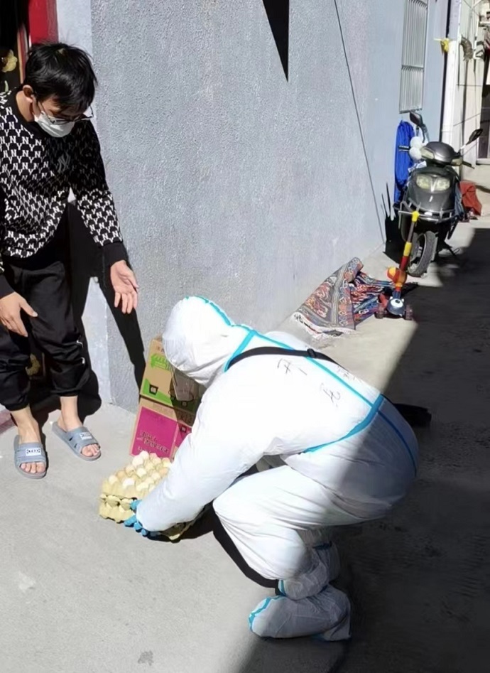 (為社區(qū)居民配送物資)