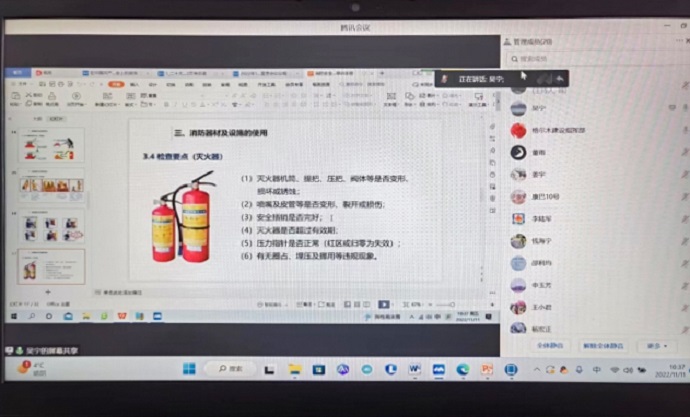 11月11日,油氣管道分公司組織開展消防安全知識線上專題學(xué)習(xí)會。會議傳達(dá)學(xué)習(xí)了西藏自治區(qū)國資委關(guān)于轉(zhuǎn)發(fā)《2022年“119”消防宣傳月活動方案》的通知和《消防安全基礎(chǔ)知識培訓(xùn)手冊》,觀看了《2022年近期住宅小區(qū)消防安全警示片》。