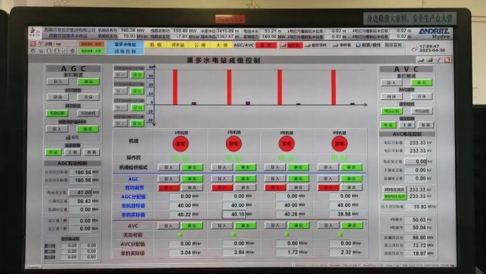 4月30日晚高峰期間,果多水電站4臺機(jī)組滿負(fù)荷160MW運(yùn)行,各項(xiàng)工況指標(biāo)良好。