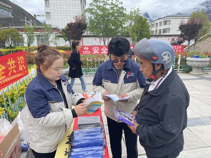6月16日,嘎堆水電公司組織5名宣傳志愿者到加查縣城開展2023年“安全生產月”宣傳咨詢日活動。