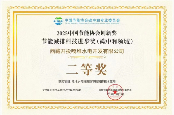 近日,中國節(jié)能協(xié)會2025年度創(chuàng)新獎獲獎名單正式公布,西藏開投嘎堆水電公司申報的“嘎堆水電站高效節(jié)能減排技術應用”項目榮獲“節(jié)能減排科技進步獎(碳中和領域) 二等獎”。
