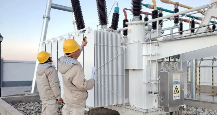 運(yùn)維人員在巡檢過程中進(jìn)行110kV主變測溫。