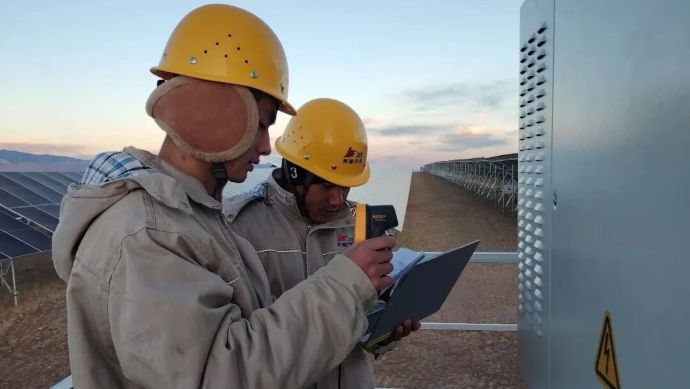 為了電站的安全穩(wěn)定運(yùn)行,改則光儲電站運(yùn)維人員每天必須要做的就是開展設(shè)備巡檢,從中控室出發(fā)前往高壓開關(guān)室、升壓站、光伏區(qū)、生活區(qū)等關(guān)鍵位置,對變壓器、SVG、逆變器、儲能箱變、光伏板等設(shè)備依次進(jìn)行全方位排查。“冬季電站運(yùn)維面臨的最大挑戰(zhàn)就是大風(fēng),改則光儲電站地勢較高,冬天幾乎每天都是大風(fēng)天氣,有時候風(fēng)吹得人都站不穩(wěn),刮得人臉上生疼。越是這種天氣越要認(rèn)真排查有沒有光伏板被風(fēng)吹掉了、設(shè)備運(yùn)行是否正常、組件螺栓有沒有松動……生活上的一些用電等隱患也要仔細(xì)排查。如果發(fā)現(xiàn)問題,我們第一時間記錄并處理。”西藏開投電力工程公司副總經(jīng)理孫繼東說。