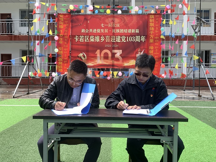 活動上,觀看了文藝表演,參加了“黨史、黨紀(jì)、普法”知識問答,向“光榮在黨50年”的老黨員頒發(fā)紀(jì)念章及慰問金,與柴維鄉(xiāng)人民政府簽訂了《2024年卡若區(qū)柴維鄉(xiāng)人民政府與西藏開投果多水電有限公司政企聯(lián)動促團(tuán)結(jié)共發(fā)展協(xié)議書》。果多水電公司黨支部書記、董事長、總經(jīng)理宋亞東表示,果多水電公司將秉持“建設(shè)一座電站、帶動一方經(jīng)濟(jì)、保護(hù)一片環(huán)境、造福一方百姓、共建一方和諧”的理念,進(jìn)一步強(qiáng)化內(nèi)部管理,保障安全生產(chǎn)運行,不斷提升企業(yè)效益,積極履行社會責(zé)任,集聚資源惠及群眾,深化地企合作共贏發(fā)展,為建設(shè)團(tuán)結(jié)富裕文明和諧美麗的社會主義現(xiàn)代化新西藏做出更大貢獻(xiàn)。