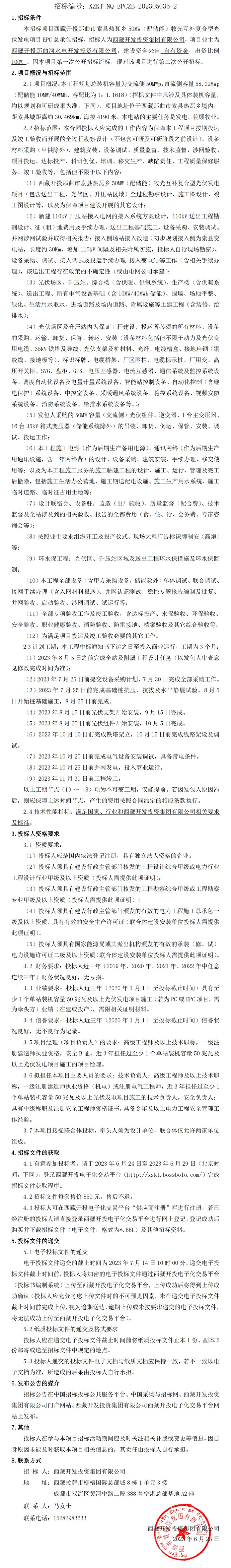 伏發(fā)電項(xiàng)目EPC總承包招標(biāo)(第二次)公告