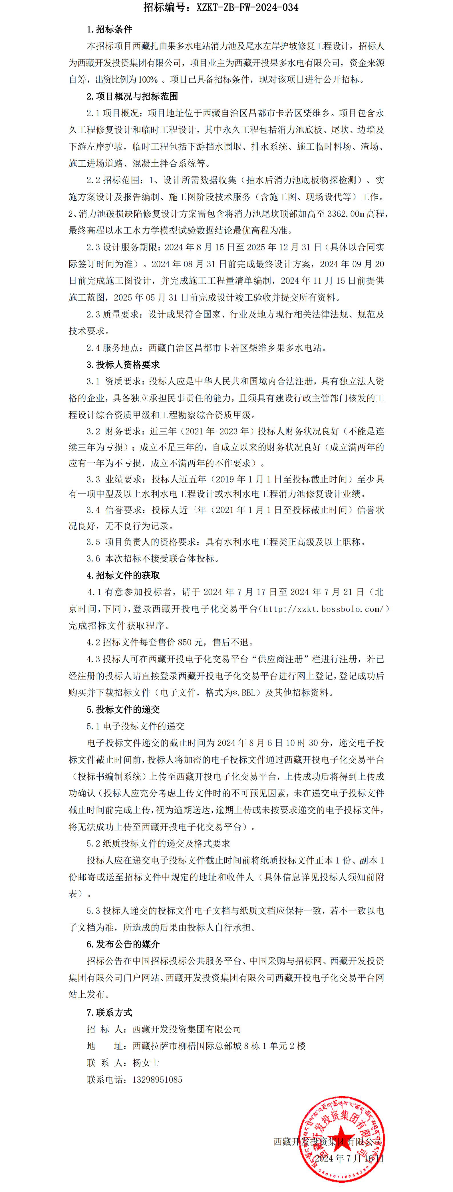 西藏扎曲果多水電站消力池及尾水左岸護坡修復(fù)工程設(shè)計招標公告