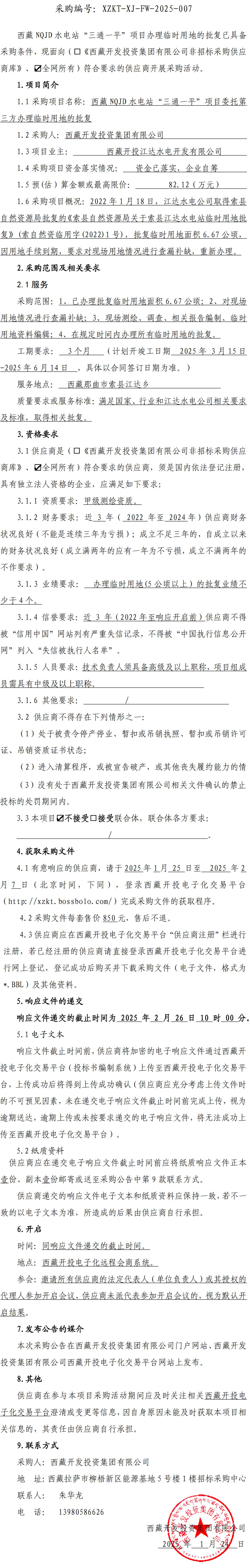 西藏NQJD水電站“三通一平”項(xiàng)目辦理臨時(shí)用地的批復(fù)詢價(jià)采購(gòu)公告